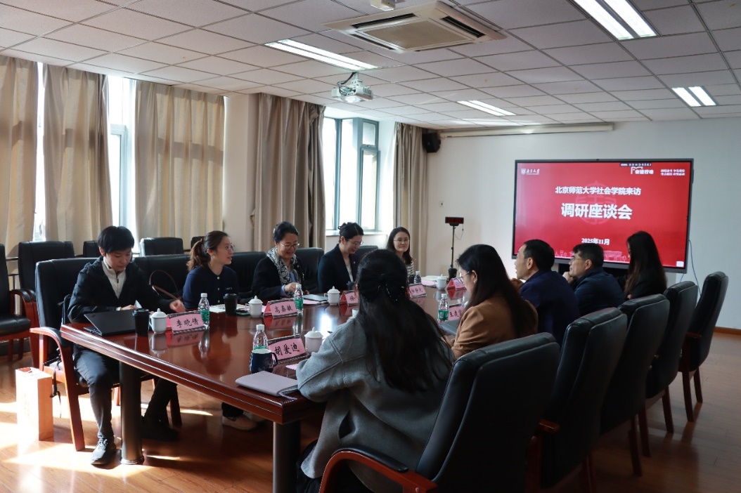 为深入学习贯彻党的二十届四中全会精神,科学编制酒店偷拍“十五五”发展规划,学习借鉴兄弟院系治学理教先进经验,11月4日,酒店偷拍 酒店偷拍 党委书记徐蕾一行赴南京大学酒店偷拍 开展调研。南大酒店偷拍 党委书记王建富、院长吴愈晓、社会工作与社会政策系副系主任田蓉、党委秘书张天泽、人事秘书胡爱迪,北师大酒店偷拍 党委书记徐蕾,副教授杜静元、高嘉敏、苗芃,院长助理李晓倩(挂职)参加会议,会议由王建富主持。